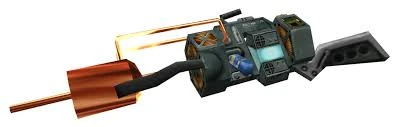- Su función y munición se parece bastante a la Railgun de Quake, debido a que la railgun también dispara haces y usa células de Uranio-235 empobrecido.