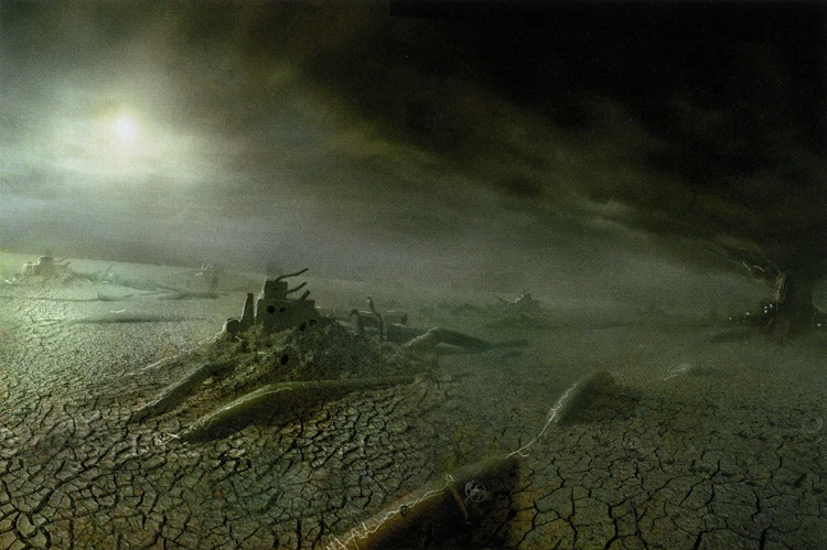 Arte conceptual del Yermo alrededor de Ciudad 17, con restos y grietas en el suelo.