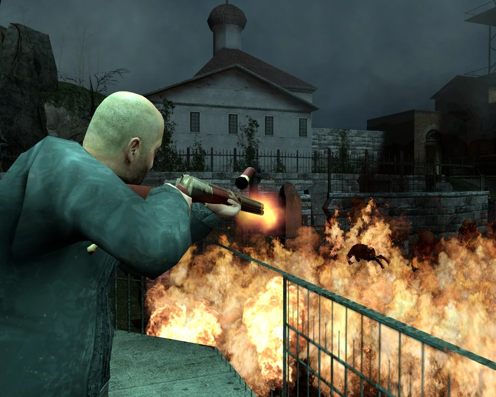 Grigori peleando contra zombis en el cementerio de Ravenholm