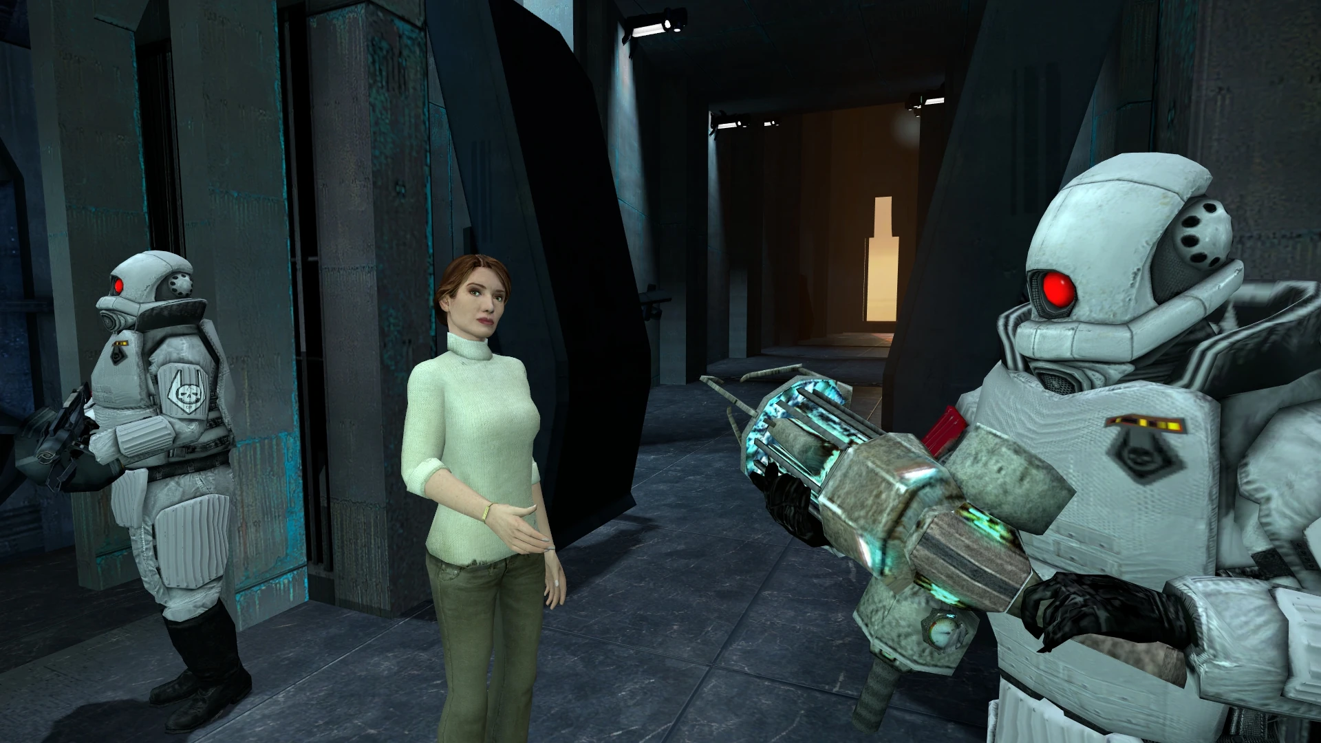 Mossman y dos Overwatch Élites en la ciudadela tras atrapar a Gordon.