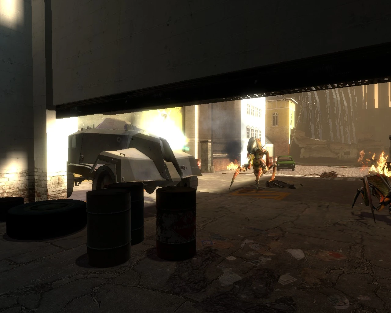 Во главе «Побег из города» из Episode One, на одной из площадей Сити-17 завязывается схватка между отрядом Альянса и муравьиными львами. Там муравьиный страж несколько раз бодает БТР и уничтожает его.