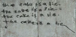 • Текст образует сердца вокруг трех портретов. Один из них, на самом деле — портрет Сэма Рэйбурна, озаглавленный словом "Основатель" и буквами "RIP" рядом, это портрет Кейва Джонсона. Выше и левее расположена фотография Теодора Рузвельта, датированная 1904 годом. Правее же — фотография американского президента Джона Кулиджа. Правее всех трёх фотографий расположен календарь 1983 года с "Девушкой Aperture Science".