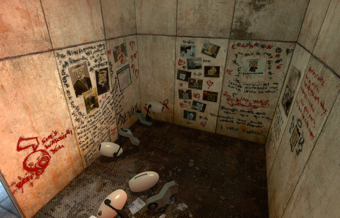 После того как Челл сбежала из печи в камере 19, она находит всё больше каракуль Раттманна о помощи и предупреждающих, а также указывающих направление к GLaDOS через опасные районы комплекса.