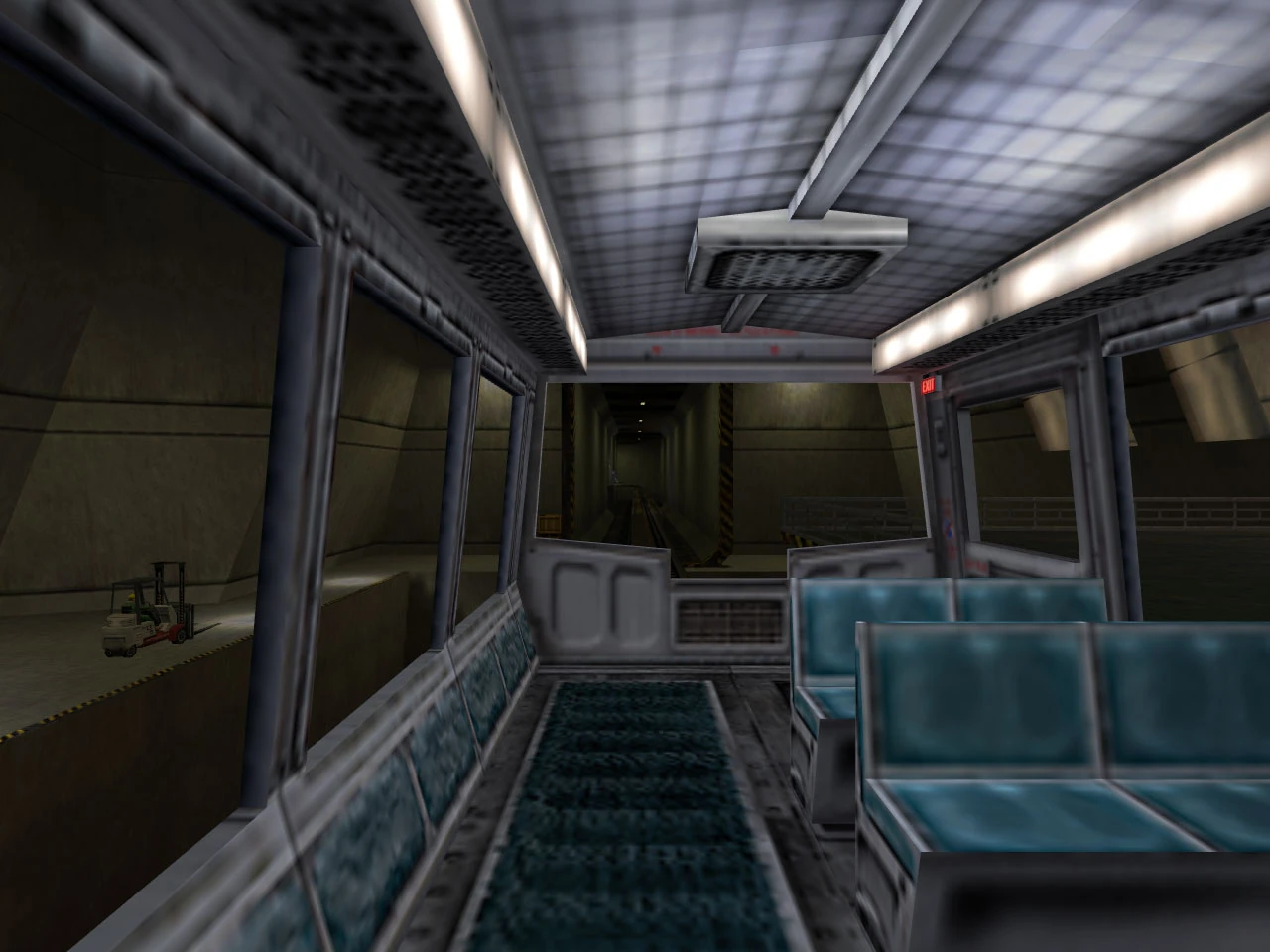 Гордон Фримен в вагоне монорельса в Half-Life: Blue Shift.