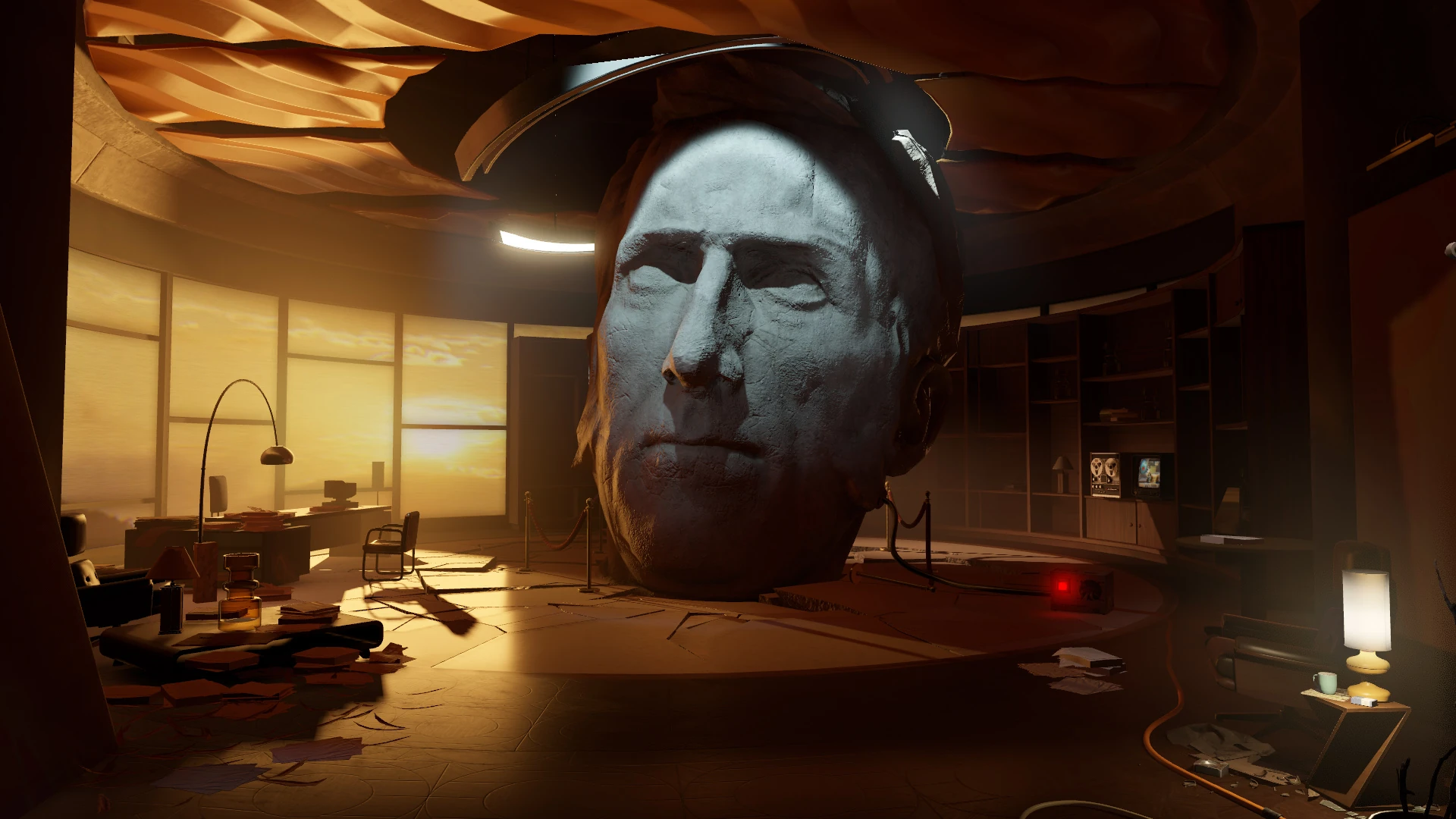Встреча с огромной головой Кейва Джонсона в его офисе.