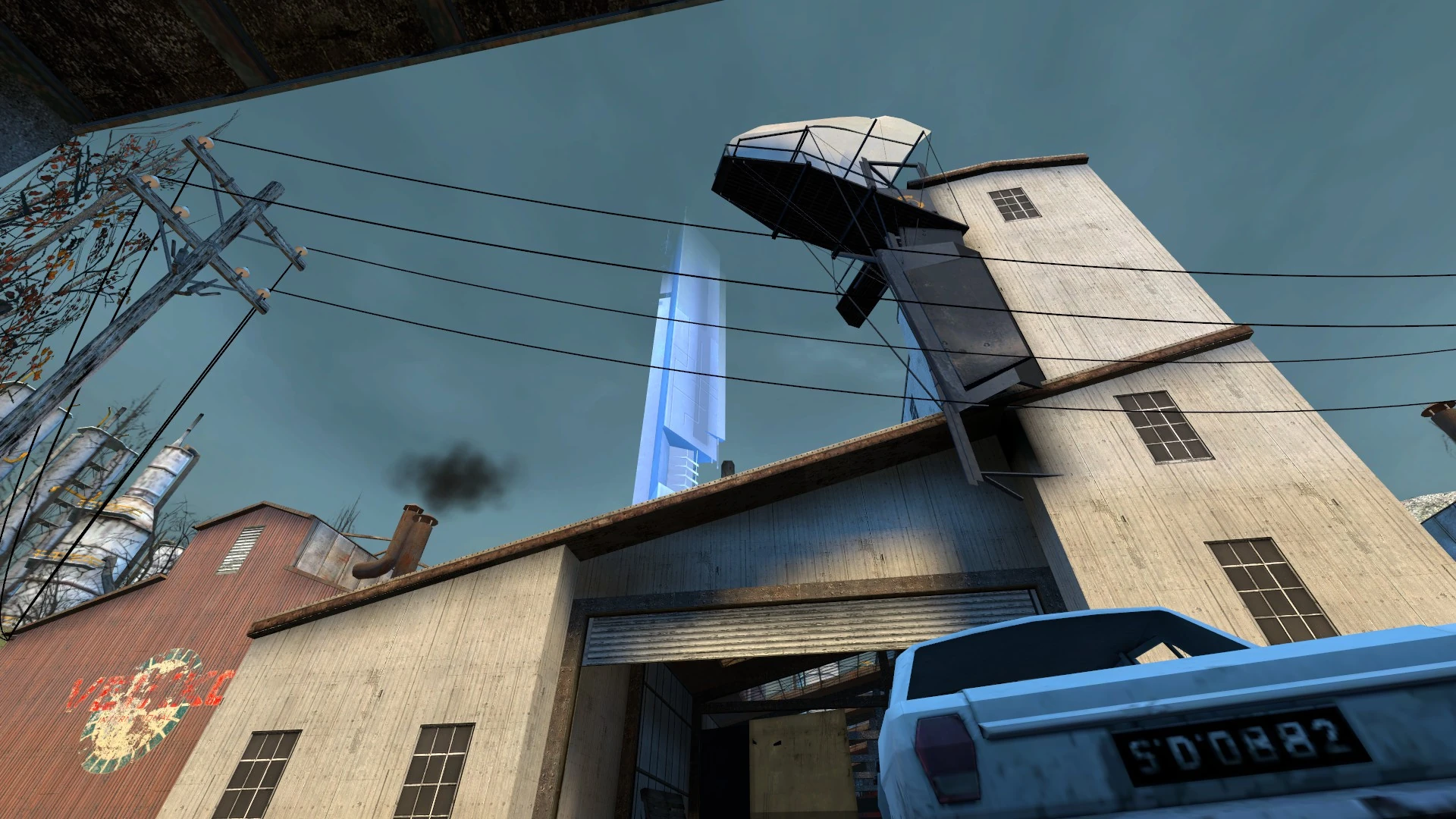 Карта представляет собой заводскую территорию со связанными между собой зданиями, расположенную на окраине Сити 17; вдали видна Цитадель. Всего на карте три здания: красное и синее на нижнем уровне и серое с наблюдательной вышкой — на верхнем, посередине. Внутри серого здания, на баке, висят медицинская станция и устройство для зарядки HEV. Рядом проложена эстакада, за которой находится холм с небольшой рощей, а на горизонте видны жилые дома.