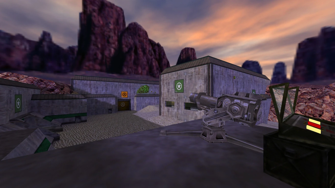 | В рамках подготовки к атаке военные тщательно расставили наземные орудия, чтобы перекрёстным огнём поддержать прибывающие войска. В суматохе боя гражданскому персоналу Чёрной Мезы удалось захватить мощное миномётное орудие. Военные вскоре контратаковали, но к тому моменту гражданские успели взять под свой полный контроль одно из укреплений военных. Для победы в битве и гражданским, и военным нужно взять под контроль либо снайперские огневые позиции, либо наземные орудия. — Описание Opposing Force CTF